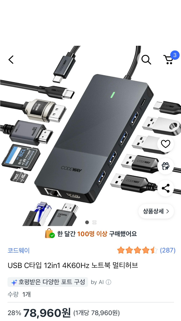 코드웨이 USB C타입 12in1 노트북 멀티허브