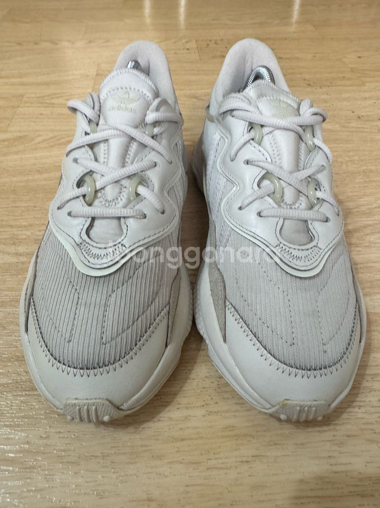 아디다스 오즈위고 운동화입니다. - 사이즈 : 250cm - 아이보리 색상이고요, 밑창에 사용감은 있지만 전체적으로 상태 괜찮습니다(사진 참고) - 가볍고 쿠션이 좋아서 편하게 신기 좋아요