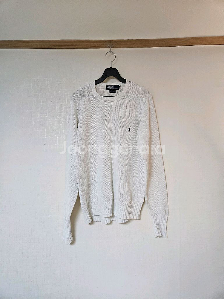 폴로 랄프로렌 흰색 니트입니다. 아예 흰색이고 눈에 거의 띄지 않는 얼룩이 존재하긴 합니다만 바로 옆에서 자세히 보지 않는한 잘 안보입니다. 관리 정말 잘되어 있고 세탁되어 있는 상태입니다. 사이즈는 100이고, 재질은 면 100%입니다.