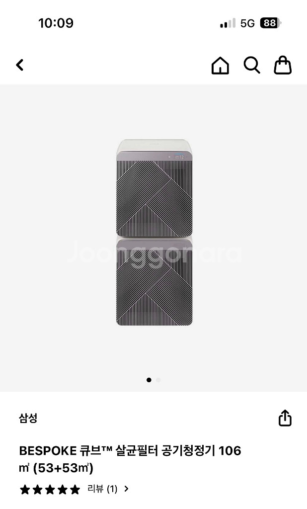 삼성 비스포크 큐브 AIR 공기청정기 판매합니다. 사진과 같이 상태 매우 좋아요~ 실사용 횟수 10회 미만이며 잘 사용하지 않아 내놓습니다. 필터도 엄청 깨끗합니다. 삼성 정품 받침대 2개(개당7마넌에 샀어요) 포함하여 판매합니다 부피로인해 직거래 선호하며 평일 용인처인구 / 주말 수원~군포에서 가능합니다 채팅주세요~^^