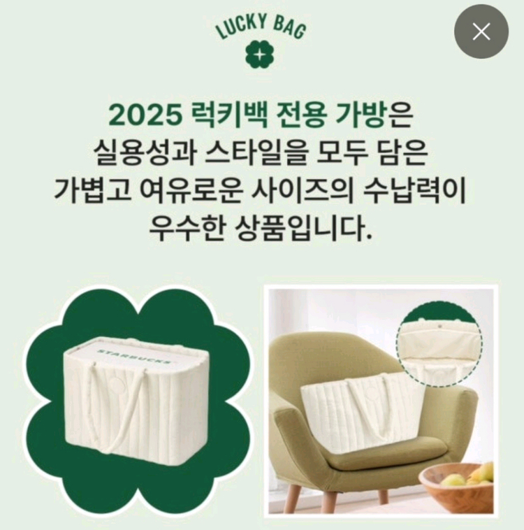 25년 스타벅스 럭키백 가방입니다 미사용제품이구요 비닐에 넣어보관했어요. 건대입구직거래가능