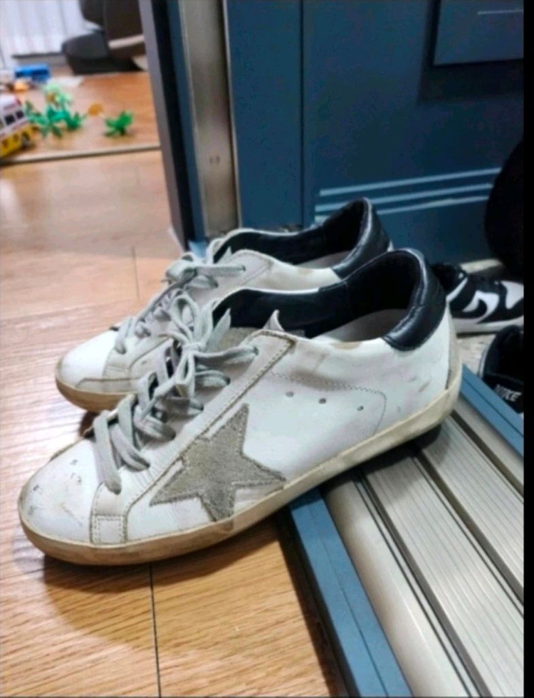 골든구스 슈퍼스타 스니커즈 판매합니다 ,골든구스36 몇 번 신지않아 가죽구김이 거의 없습니다!!!) - 브랜드: 골든구스 (GGDB) - 모델: 슈퍼스타 - 사이즈: 36 - 색상: 흰색 가죽, 회색 별 패치 편하게 신기 좋아요 1년전쯤 파주아울렛에서 40중후반 정도에 구매. (사이즈 미스로😭😭😭😭😭😭😭 발이 아파 못신고 보관만 하다가 판매합니다.) 왼쪽신발 앞쪽에 묻은거는 닦아도 잘안지워지네요.ㅠ 사진으로 보시다시피 몇번 안신어서(발아파서ㅠ) 가죽구김이 거의 없습니다. ⭐️응암역 거래도 가능합니다 +택배거래도 가능!!!⭐️
