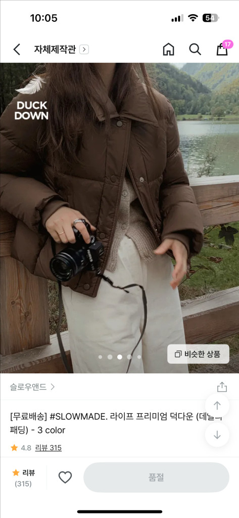 슬로우앤드 덕다운 패딩 FREE 초코브라운 드라이완료!