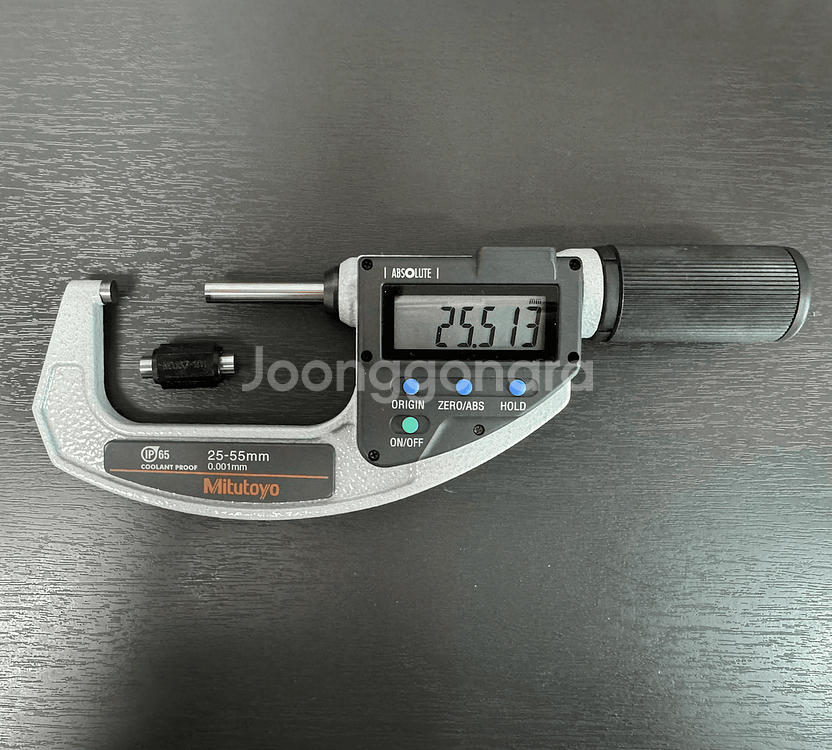 Mitutoyo 미쓰도요 미쓰도요 25-55mm QuickMike 퀵 마이크로미터입니다. 정확한 모델명은 293-667-20이고, 기준봉과 제품으로 있습니다. 25년 05월 15일 교정 받은 교정품입니다. 상태는 사진과 같이 깨끗합니다. 한 바퀴에 10mm 이동하여 측정이 매우 빠르고, 측정 범위가 30mm로 넓어서 편리합니다. 신품 50만원 이상의 제품입니다.