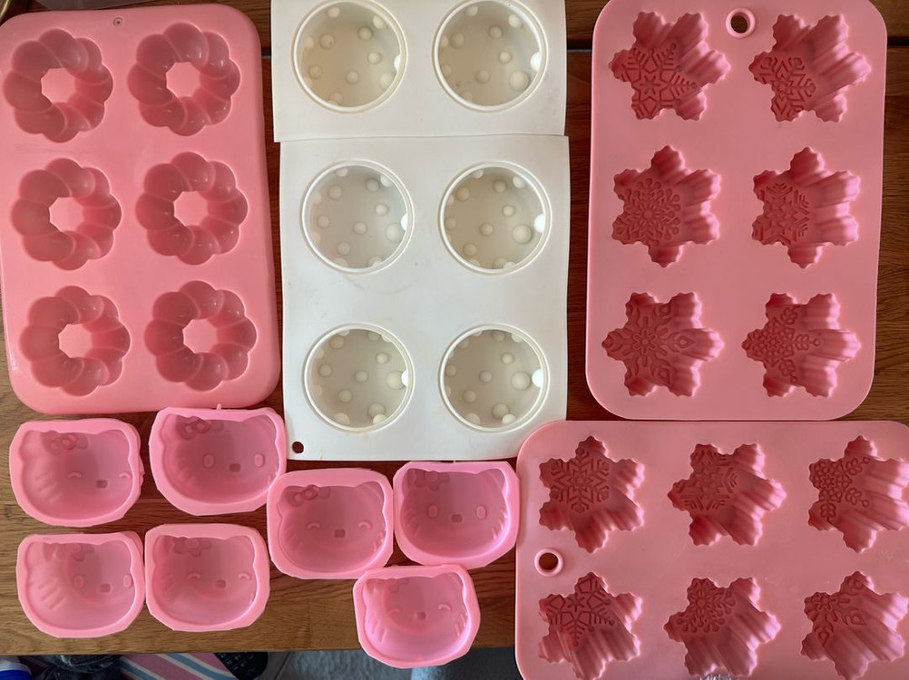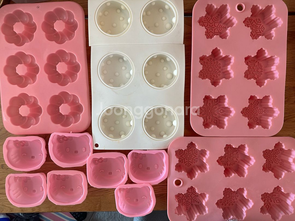 다양한 모양의 실리콘 몰드 세트 - 도넛, 눈꽃, 키티, 치즈 모양 있어요 - 석고 방향제, 비누 등을 만들 때 사용하면 좋아요. - 일반 비누용으로 좋은 사이즈! - 몰드 찌그러진것 없어요. - 더러운것 없지만 한번 물세척해서 사용하세요 *쿨거래시 비누몰드 몇개 더 넣어드려요~