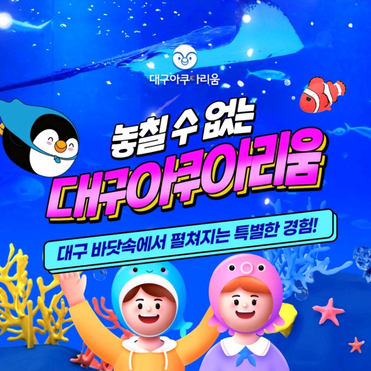 대구아쿠아리움 대인입장권 1매입니다. 어둠 속에서 물고기와 함께하는 특별한 경험을 할 수 있는 티켓입니다. 사용기간은 1월 31일까지에요 모바일티켓으로 전송해드려요