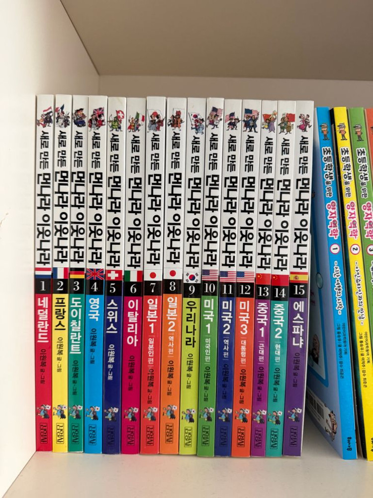 만나라이웃나라 시리즈 15권 전체 세트입니다. 책들이 깔끔하게 보관되어 있고 상태좋습니다. 아이들 교육용 도서로 인기 많은 시리즈예요.