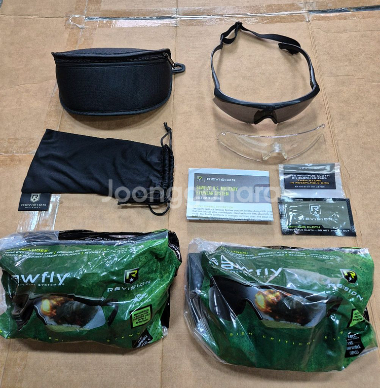 REVISION SAWFLY 방탄고글 판매합니다. 오리지날 미군 정식보급품이며 미개봉새상품입니다. 구성품:렌즈2개(야간용,주간용),케이스 김서림방지제,렌즈크리너 아시안핏이며 레귤러 사이즈라서 한국인 얼굴체형에도 잘 맞음. 등산 낚시 자전거라이딩등 방풍및 자외선차단등 야외활동에 최적 UVA/UVB 100%차단 해외에서 정가 $80 정도에 판매되는제품임 made in usa