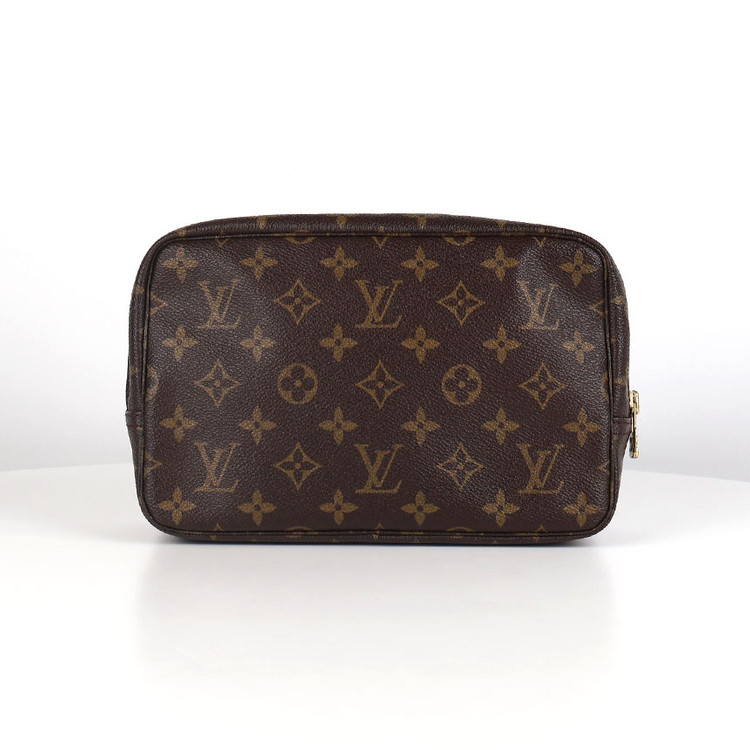 - [중고명품다올] 루이비통 모노그램 트루스 토일렛 파우치 M47524 상태 □ N □ S □ A+ ■ A □ B+ □ B 디테일정보 □ 0-2회 □ 2-5회 □ 5-10회 ■ 10-20회 □ 20회이상 사이즈 22.5 x 14.5 x 6 cm *재는 위치, 각도에 따라 약 1-2cm 오차 범위가 있을 수 있습니다. 구성품 본품, 더스트, 업체보증서 이번에 소개해드릴 제품은 루이비통 모노그램 트루스 토일렛 파우치 M47524입니다. 루이비통의 클래식한 모노그램 캔버스로 제작되어 브랜드 특유의 고급스러운 감성이 잘 드러나는 아이템입니다. 트루스 토일렛 라인의 파우치로 여행용 세면도구는 물론 소지품 정리에 활용도가 높습니다. 지퍼 여닫이 방식으로 수납이 편리하며 내부 공간이 넉넉해 실용성이 뛰어납니다. 전체적으로 자연스러운 사용감 있는 제품입니다. -