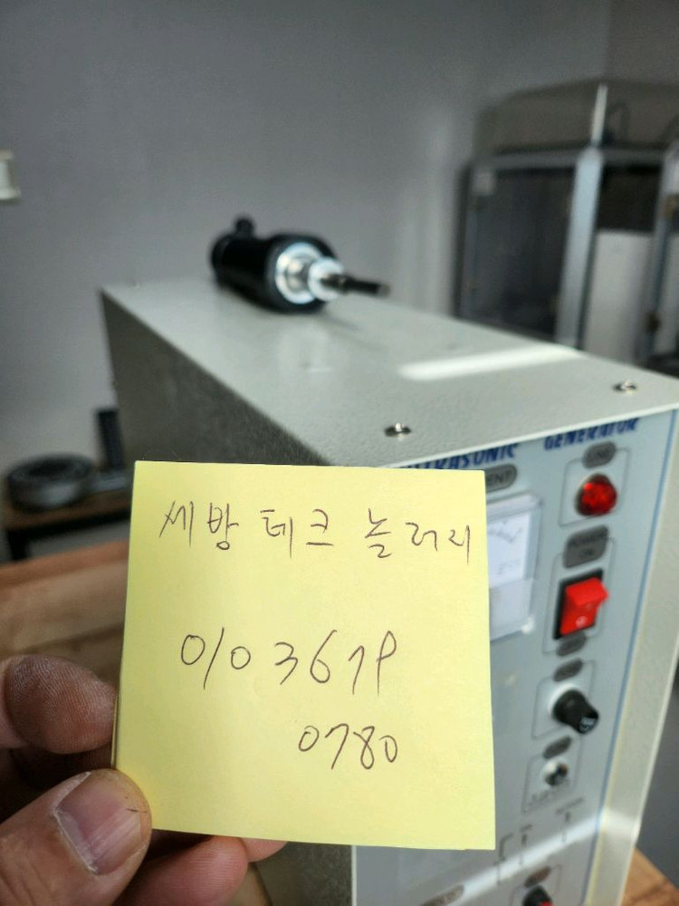 초음파융착기 핸드타입 컨트롤러 진동자 모두 국산 제일초음파 듀라소닉 제품이며 28khz 융착상태 매우양호하며 테스트만한제품이라서 매우양호합니다 조립과정에서 약간에 스크래치 있습니다 판매금액은 50만원입니다 수량은 여러대까지 가능합니다 한대부터 판매가능합니다 연락주세요 융착팁은 용도에따라 변경하시면됩니더