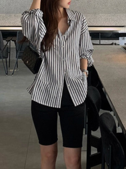 (F) 스트라이프 오버핏 셔츠 가슴단면65 기장70 ❌무리한 네고나 교환 신청은 받지 않습니다. 📦결재 해주시면 바로 다음날 택배 보내드립니다.
