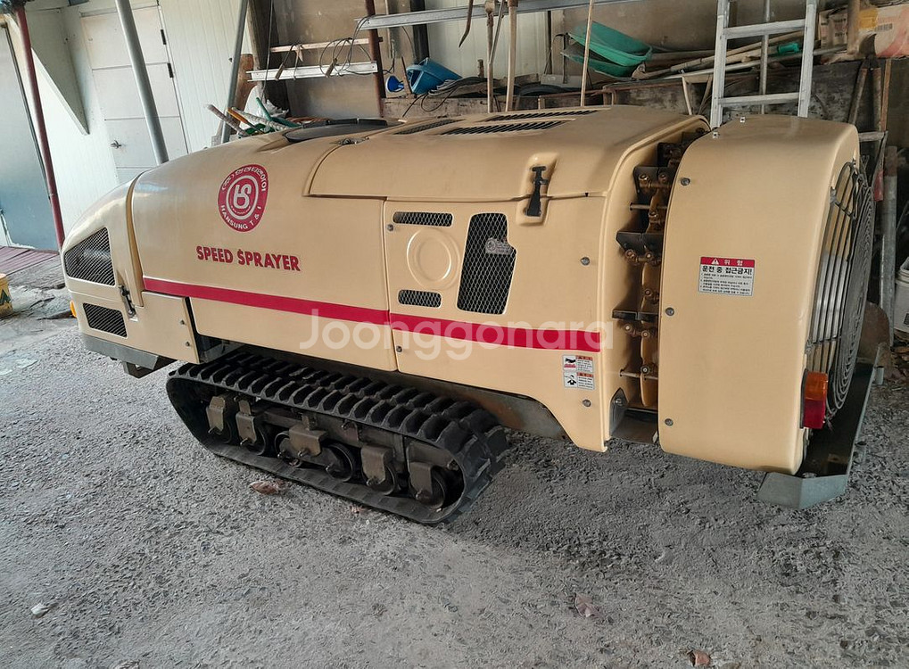 개인정보(거래정보)를 주고받는 행위는 사기에 노출될 수 있으므로 즉시 중고나라로 신고해 주세요농업용 스피드스프레이러입니다. 농약이나 화학물질 배포에 사용되는 전문 장비로, 트랙 바퀴가 달려있어 농사일에 유용해요. 사용감은 있지만 작동 상태 양호합니다 점검완료 울산입니다 01022351177