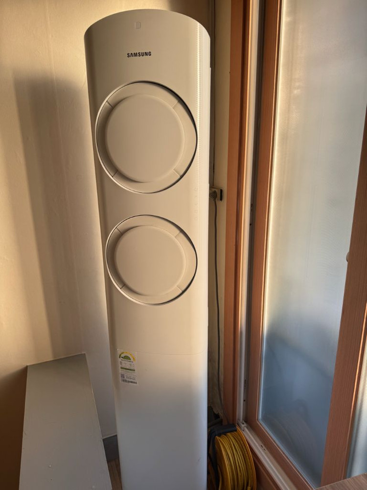 삼성 스탠드 에어컨(실외기포함) ,16평형 ,25만, 사당역 17년 말에 구매했지만, 많이 사용 안했어요 해체하셔서 가져가야합니다. 도와줄사람이 없어요 OIO-2O25-O885 오브제 시리즈 스탠드형 에어컨이에요. 깔끔한 화이트 컬러로 인테리어와 잘 어울리고, 사용감은 있지만 작동 상태 양호합니다.