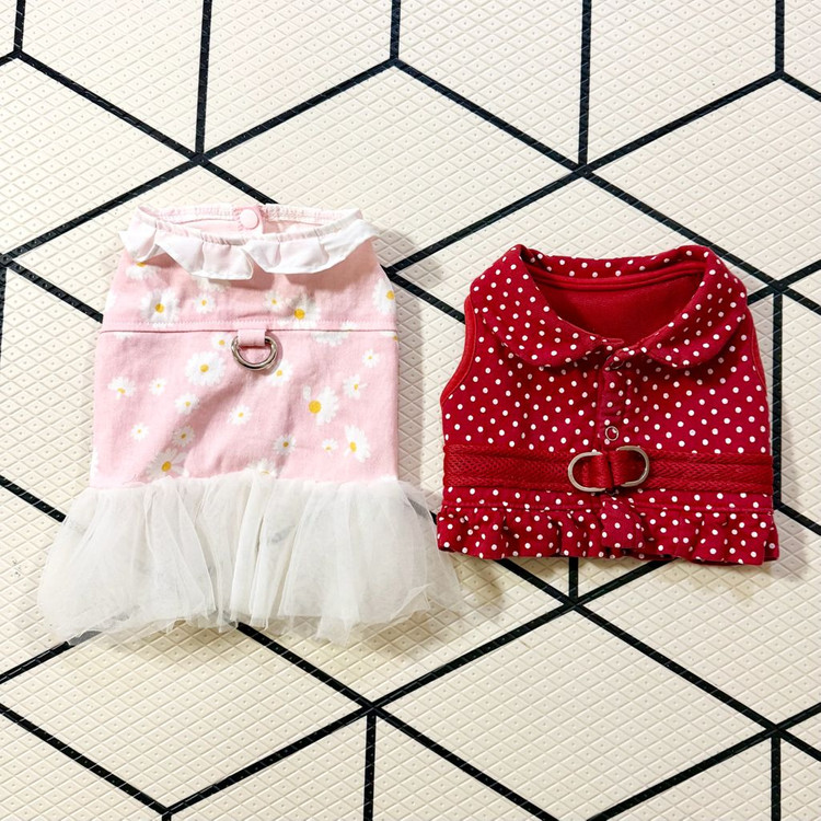 ❗️저는 우체국방문택배를 이용하는데 금일 예약하면 익일에 수거하세여 그럼 익익일에 받으십니당 😁 주말엔 방문 안하시구요 ❗️반택 안됩니당 😂 🍒강아지 하네스 L사이즈 2개 둘 다 사용감 그닥 없어요 왼쪽 레이스 원피스 완전 공주공주! 오른쪽 땡땡이 조끼 하네스는 25,000원에 구매. 넘 귀엽구 예뻐요! ❗️반품 환불 안되니 신중한 거래 부탁드려요! 🙅🏻♀️