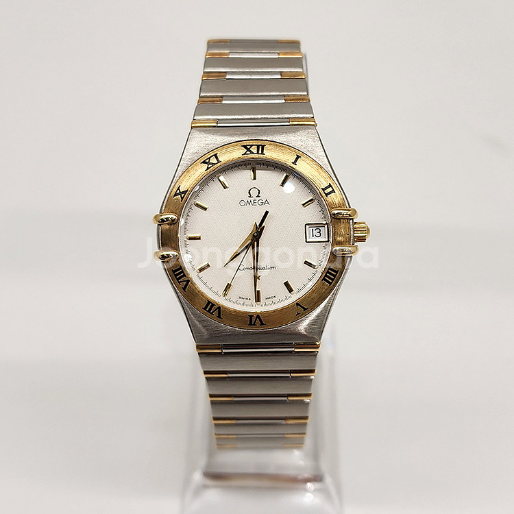오메가 1312.30 콤비 하프바 컨스틸레이션 쿼츠 34mm 색상: 골드, 실버톤 소재: 골드, 스테인리스스틸 사이즈: 34 x 34 둘레: 약17cm 폴리싱 및 내부점검 완료 전체적으로 사용감 존재