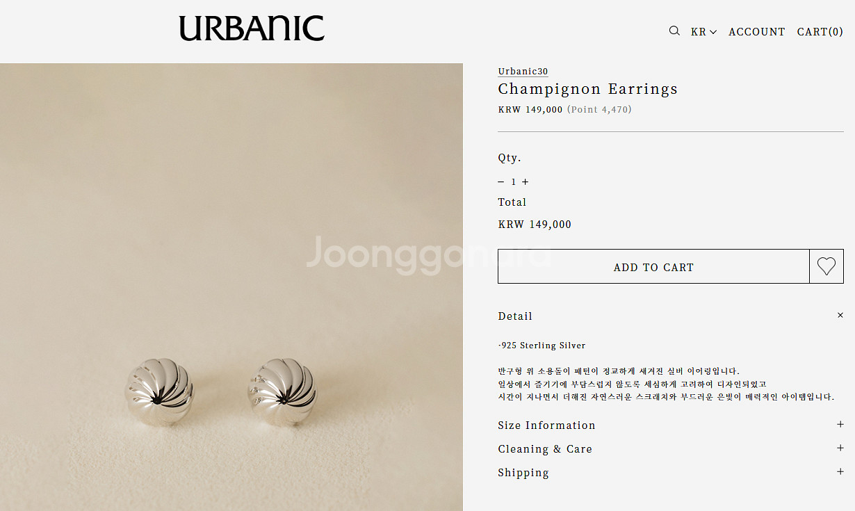 얼바닉30 귀걸이 champignon earrings입니다. 구매할때 동봉된 보관 파우치와 실버세척섬유도 같이 드릴게요. 깔끔한 상태로 보관되어 있고, 실착 1번밖에 안한 제품입니다. 구매는 149,000원에 공홈에서 구매했고, 구매내역도 첨부했습니다.