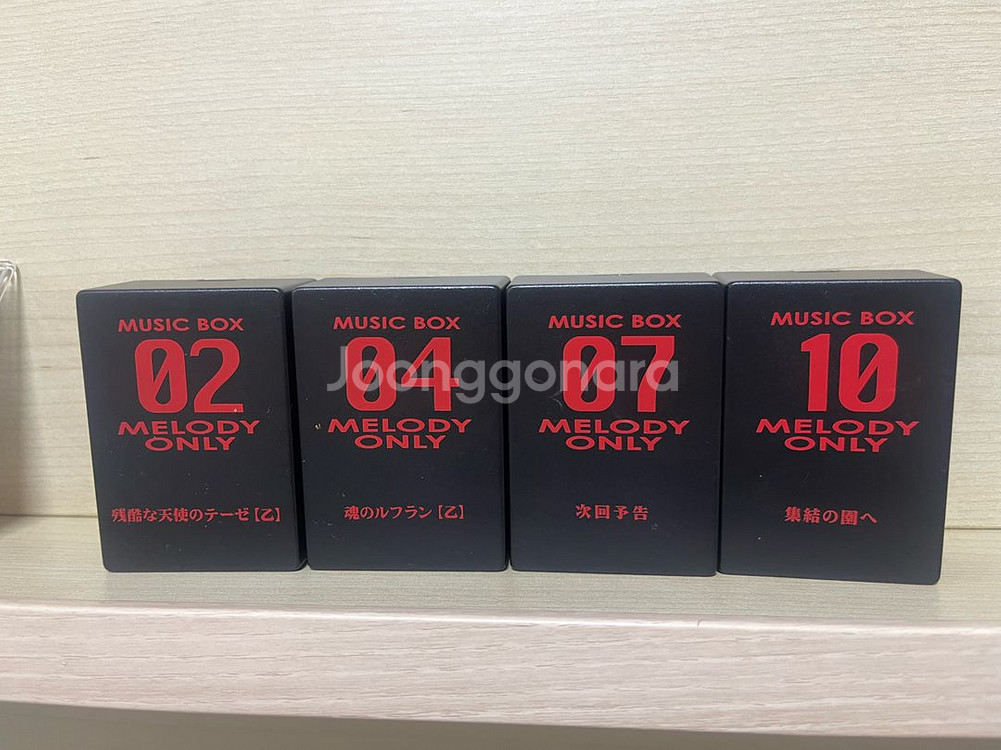 에반게리온 제레 오르골 4개 일괄 상점소개 읽어주세요! 읽으셨다는 전제 하에 거래합니다. 읽지 않으시고 생기는 문제는 책임지지 않습니다 02, 04, 07, 10 번 4개 일괄입니다 02. 잔혹한 천사의 테제 04. 혼의 루프란 07. 차회 예고 10. 집결의 정원으로 04번 제외 헛돌거나 소리가 안나요 인테리어용으로 쓰시면 될 것 같습니다