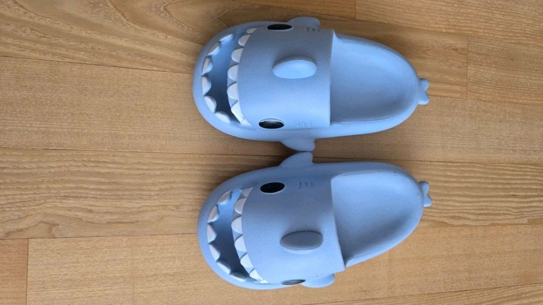 조카방문으로 구입해뒀던 상어 슬리퍼예요 사이즈 미스로 한 번도 신기지 못해 포장만 뜯은 채로 있습니다 사이즈 210이예요 제가 구매했을땐 택포 12000원정도 줬어요!