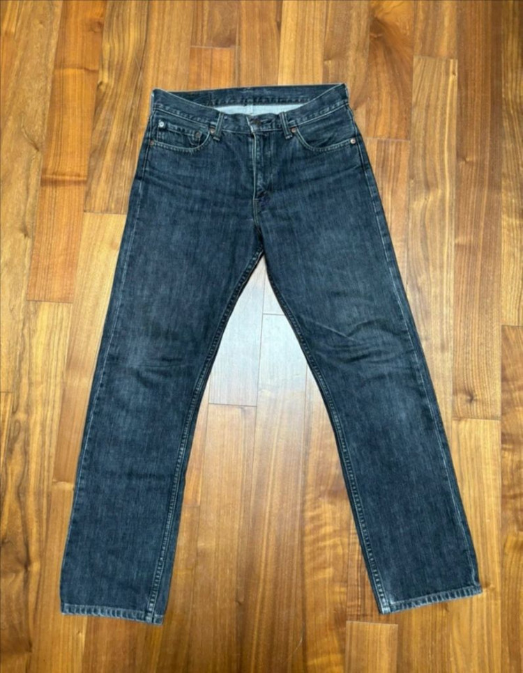 데님 매니아라면 제대로된 워싱감을 보여주는 블랙진이 얼마나 희귀한지 아실겁니다. 마지막으로 본 제품이 웨어하우스 스컬프 스토어 별주 블랙진입니다. 제가 보유중이거든요. 아, RRL은 블랙진이 좀 진하게 나오죠. 대안으로 풀카운트 정도? 이 모든 브랜드의 근본이 되는 빈티지 리바이스입니다. 게다가 황금 사이즈인 31사이즈입니다. 깔끔하게 떨어지는 바지통이 호불호가 갈리지 않으며, 투박한 신발과 매칭했을 때 은은하게 잡히는 곱창이 매력적이며 날렵한 신발과 매칭했을 때 깔끔히 떨어지는 쉐입도 남자다운 다재다능한 청바지입니다. 특히 청바지 파보신 분들은 곱창이 얼마나 까다로운 조건을 요하는지 잘 아실겁니다. 감히 제가 보유하고 있는 웨어하우스 청바지들과 워싱 및 oz 측면에서 밀리지 않는 제품이라 말하겠습니다. 다만, 저는 웨어하우스 흑청을 하나 보유하고 있는지라 제가 사랑하는 브랜드인 웨어하우스는 남기고 해당 제품을 판매하기로 했습니다. 레드윙 부츠, 알든 코도반, 컨버스에 신어주시면 정석입니다. 허리 40정도 기장은 100 정도 나옵니다.