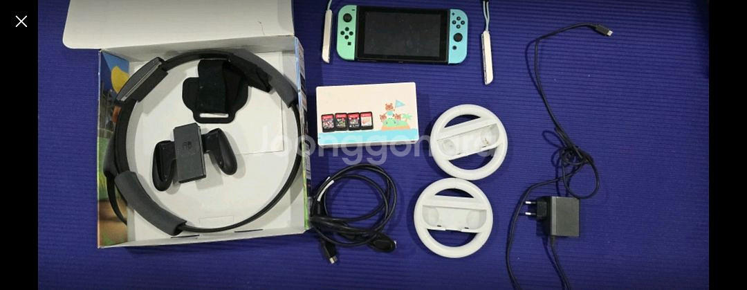 휴대용 게임기 OLED 한정판 본체와 각종 액세서리가 포함된 세트입니다. 박스와 구성품들이 깔끔하게 보관되어 있어요. 게임 좋아하시는 분께 추천드립니다!