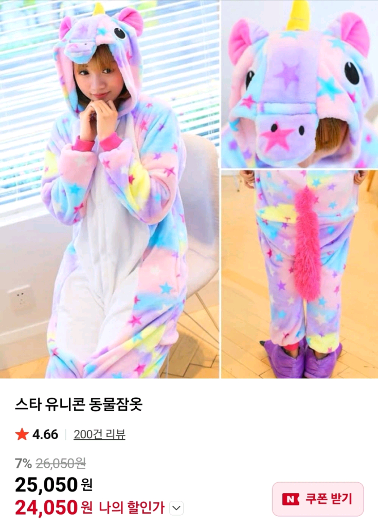 귀여운 유니콘 모양의 동물잠옷이에요! 별무늬와 컬러풀한 배색이 정말 예쁘고, 상태도 깨끗해서 바로 입으실 수 있어요. 친구들이랑 파자마파티나 초등 졸업사진 찍을때 추천요 부드러운 촉감으로 착용감이 좋아요 사이즈는 M(키 155이하) 이며 1회 30분 착용 상세 사이즈는 사진을 참고해주세요