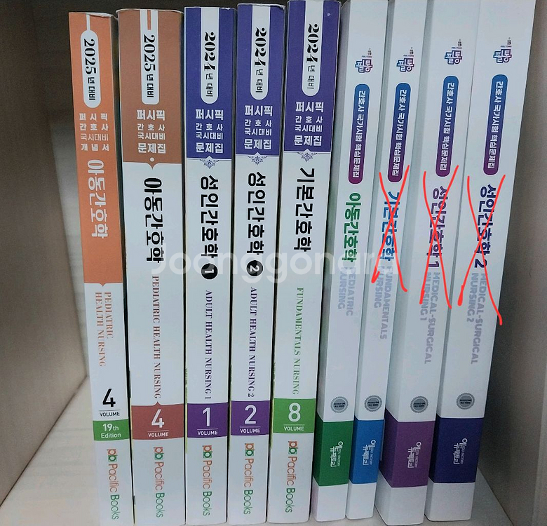 택배비 별도입니다(반택 가능!) [가격] 2025 필통 아동간호학 - 9000 2025 필통 기본간호학 -판매완료 2025 필통 성인간호학1 -판매완료 2025 필통 성인간호학2(뒷부분 조금 풀려있음) -판매완료 2025 퍼시픽 아동간호학 - 9000 2024 퍼시픽 기본간호학(전체의 5%정도 풀려있음(뒷부분)) - 판매완료 2024 퍼시픽 성인간호학1 - 7000 2024 퍼시픽 성인간호학2(전체의 10% 정도 풀려있음(맨 앞부분)) -4000 괄호 설명 없는건 완전히 깨끗한 상태의 문제집입니다! 편하게 연락주세요