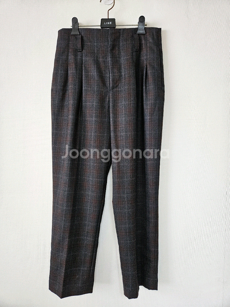 마가렛호웰의 고급스러운 체크 패턴 바지예요. 깔끔한 핏과 상태로 비즈니스나 포멀한 자리에 완벽해요. 클래식한 디자인으로 오래 입기 좋은 아이템입니다. 허리반품:38/총길이:96