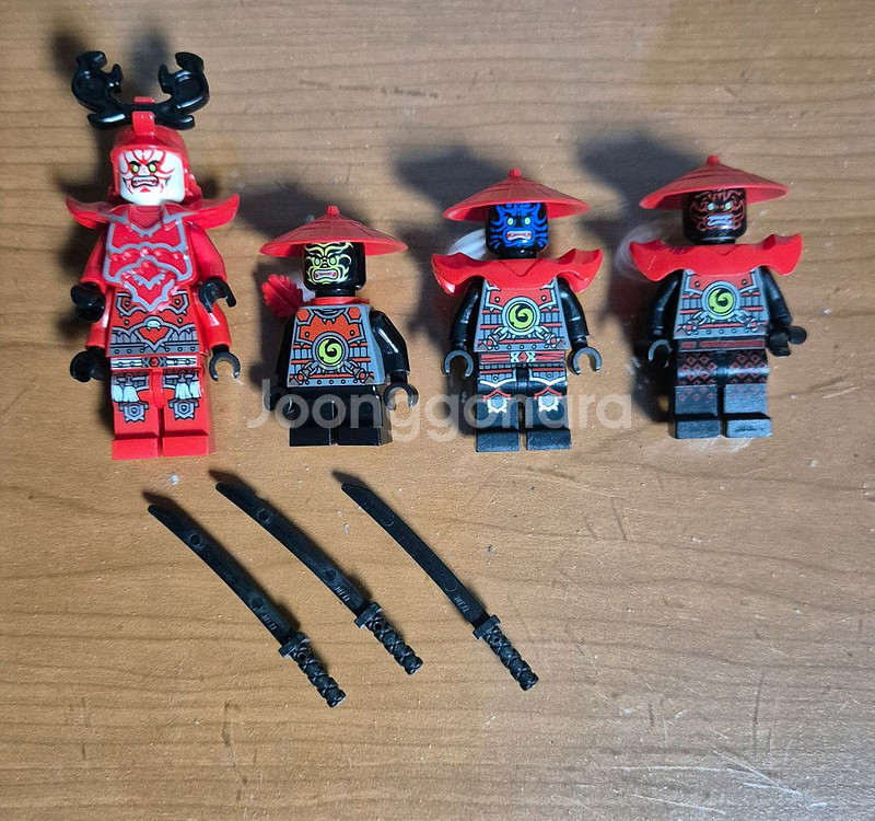레고 닌자고 스톤아미와 코주장군 판매합니다. 미니피규어 4개와 칼 3개로 구성되어 있습니다. 나머지는 상태 좋은데 코주장군 바이저가 없고 마지막 스톤아미는 얼굴이랑 바지상태가 안좋아요