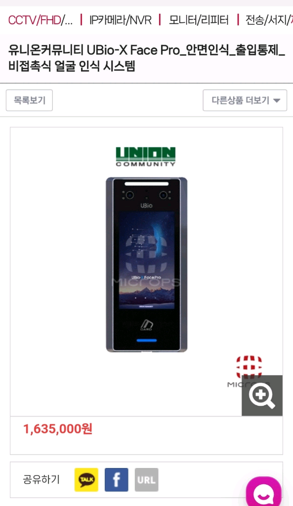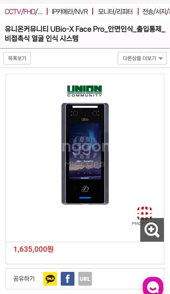 유니온 UBio-X Face Pro 안면인식리더기 신품팜