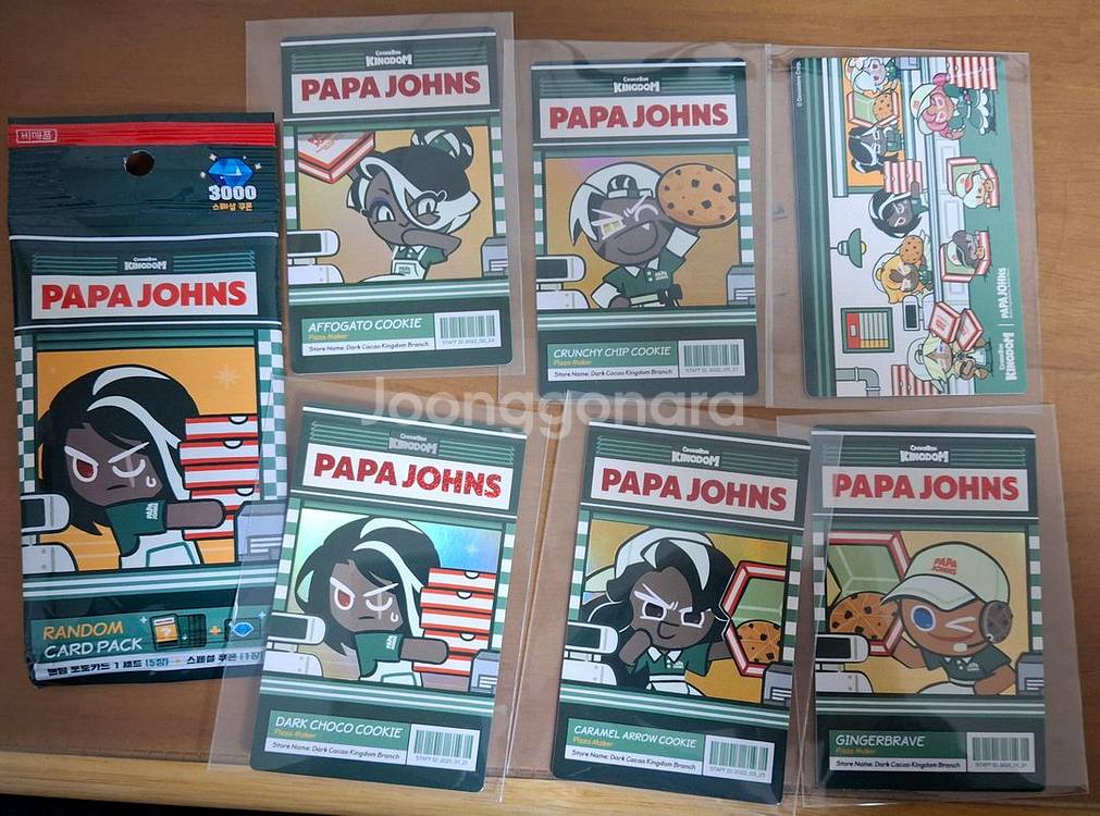 파파존스랑 쿠킬덤 이랑 콜라보해서 받은 카드들입니다. 쿠폰은 사용안했고 열고 바로 프로텍터에 넣었습니다.