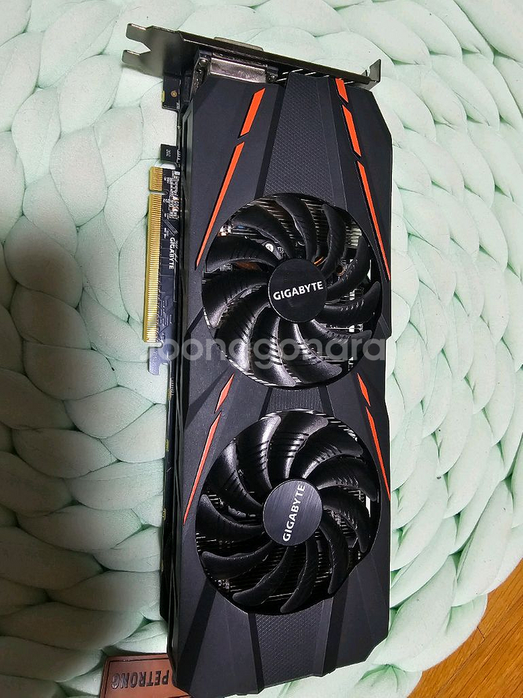 기가바이트 GTX 1060 G1 게이밍 3GB 그래픽 카드입니다 윈드포스 냉각시스템으로 2개의 팬이 있으며, 일정 온도 이상 되어야 회전하는 FAN STOP 기능이 탑재되어 있습니다 측면 LED도 잘 작동하며 거의 신품급 컨디션 입니다 안전거래 안하며 택배 및 반값택배 가능합니다