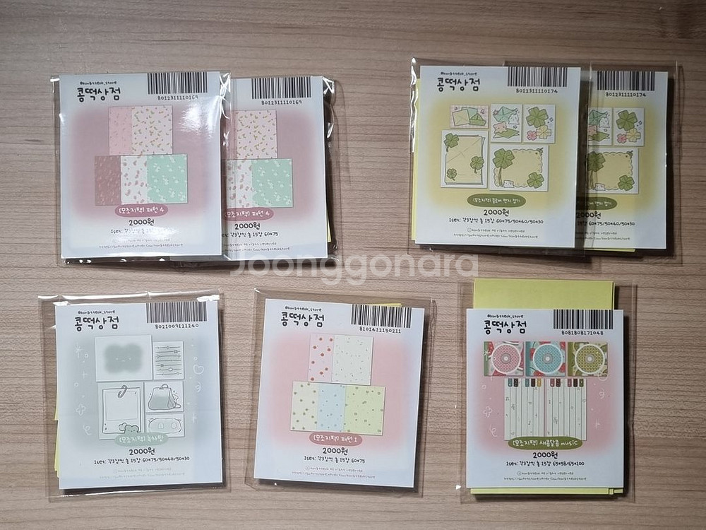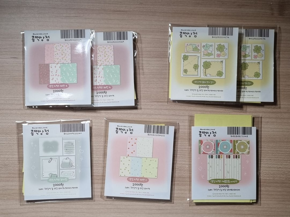 콩떡상점 모조지팩, 아크링키링, 마스킹테이프/마테 처분합니다 모두 미개봉 새상품 입니다 모조지팩 : 개당 원가 2000원 -> 1600원, 아크릴키링 원가 5000원 -> 3500원, 마스킹테이프 5500원 -> 4000원 에 처분합니다 콩떡상점 제품 일괄 구매시 반값 또는 알뜰택배 포함으로 거래합니다 (다른물품과 합배시 배송비 추가금 있음) 배송방법은 준등기 +1800, 반값 또는 알뜰택배 +1900~, 편의점택배 +3700~, 우체국택배 +4000 가능합니다! 준등기는 모조지팩 구매시 선택 가능합니다ㅜ 다른 물품은 무조건 택배류만 가능해요!