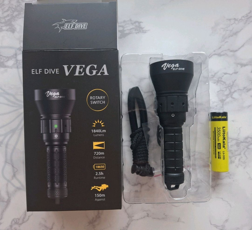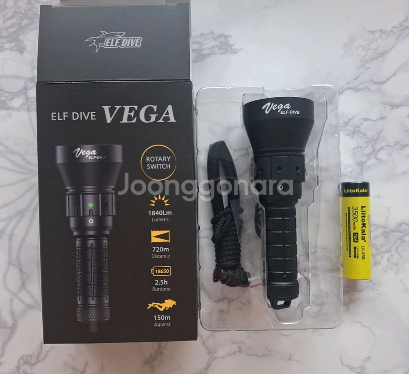 개인정보(거래정보)를 주고받는 행위는 사기에 노출될 수 있으므로 즉시 중고나라로 신고해 주세요엘프다이브 VEGA 다이빙랜턴 해루질랜턴 수중랜턴 손목스트랩 여분 O링 고출력 18650 신품 충전지 포함 풀박스 미사용품