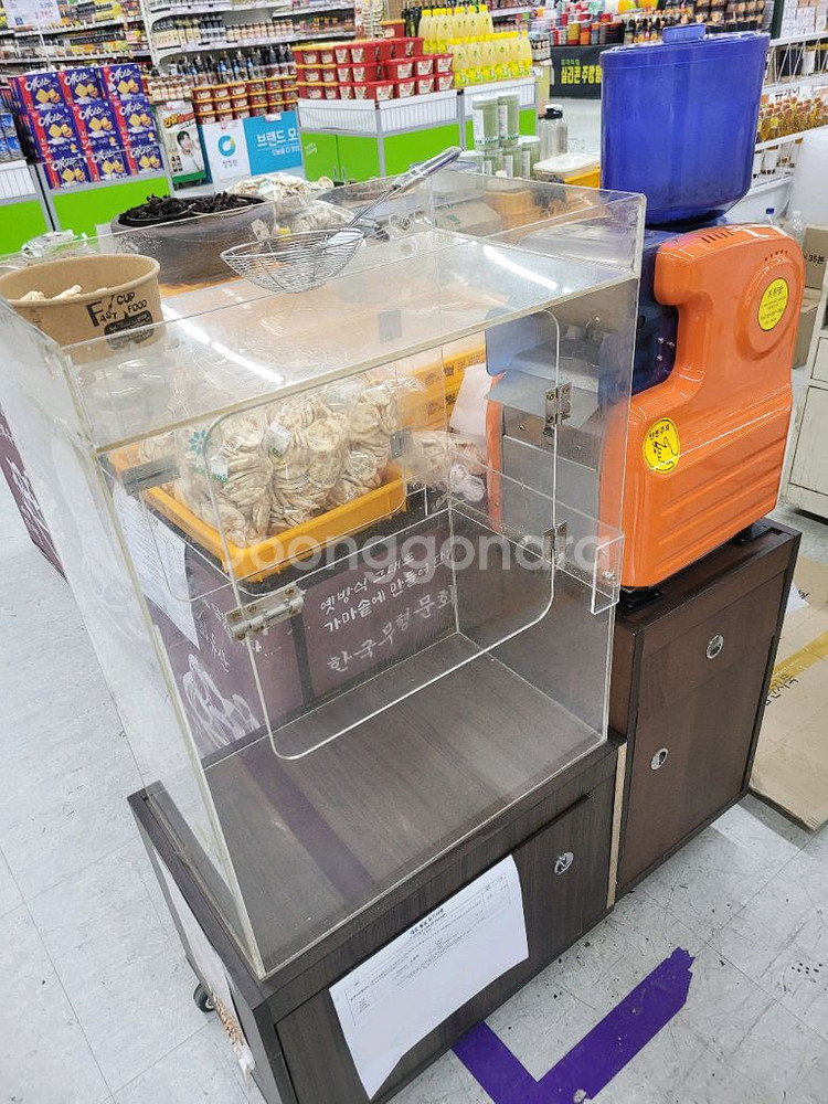 트윈팝 뻥튀기 기계와 아크릴 진열대 세트 판매합니다. 뻥튀기 기계는 오렌지색으로 눈에 잘 띄고, 아크릴 진열대는 투명하여 내용물을 깔끔하게 보여줄 수 있습니다. 뻥튀기 기계는 220V 전원을 사용하며, 뻥튀기 제조에 최적화되어 있습니다. 뻥튀기 기계와 진열대 모두 사용감은 있지만 전체적으로 양호한 상태입니다. 매장이나 행사에서 뻥튀기를 만들어 판매하거나 진열하기에 좋습니다. 재료 수급 다해드립니다~~ 가까운거리 배송해드립니다 ~