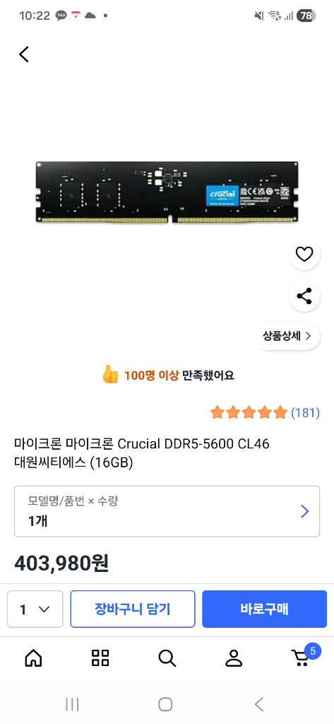 DDR5 16GB x 2ea 32gb메모리