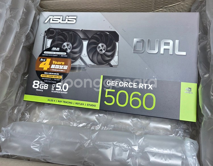 ASUS DUAL RTX 5060 미개봉 새상품 팝니다. 중고나라에 사기꾼들이 하도 많아서 직거래만 하겠습니다. 정 택배 거래를 원하신다면 선입금 후 물건 보내드리겠습니다. 위치는 부산 양정 현대아파트입니다. 2025년 12월 구매 제품입니다 AS는 4년입니다. 네고는 받지 않습니다.