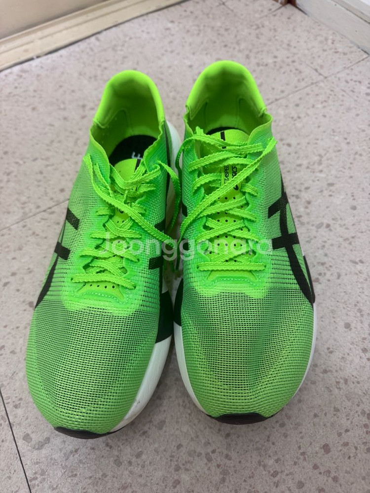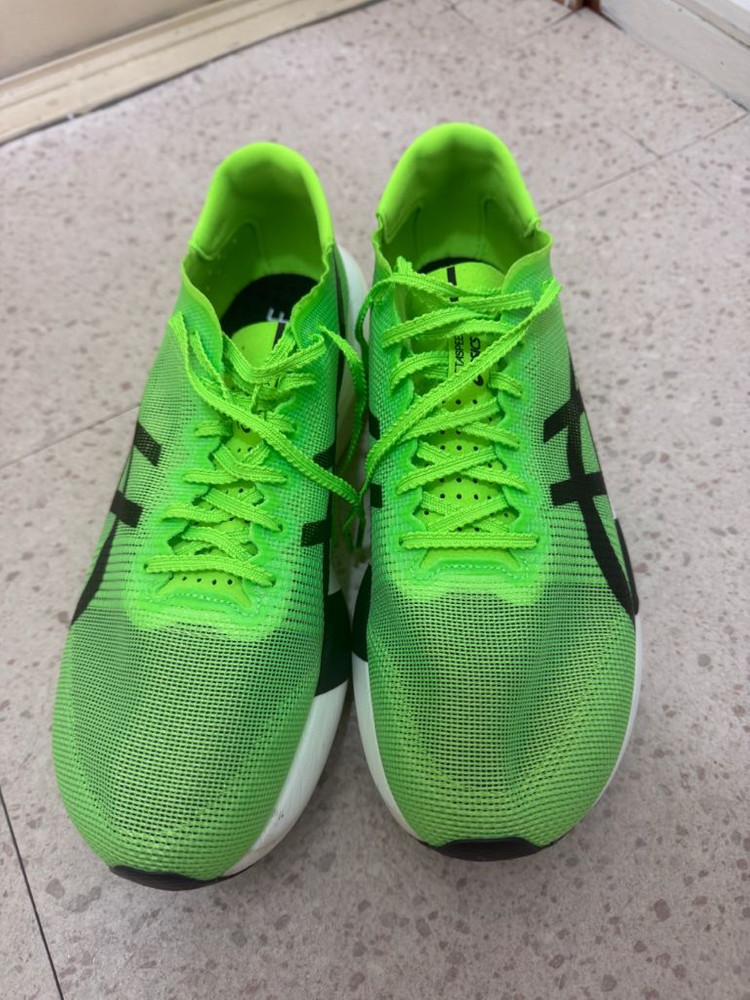 아식스 메타스피드 엣지 도쿄 275mm 러닝화입니다 가볍고 반발력이 뛰어나 기록 향상에 도움을 줍니다 실착 후 사이즈 미스로 판매합니다 사용은 테스트 런닝으로 5km만 뛰었습니다