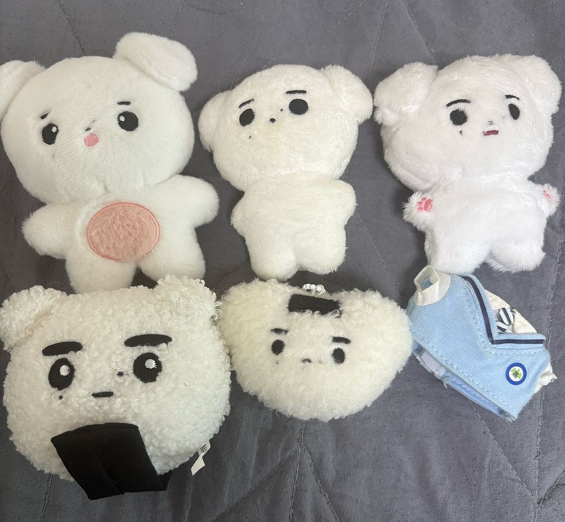 엔하이픈 성훈 인형 팔아요 훈댕이랑 훈댕이 밑에 애는 좀 꼬질꼬질해서 0.4 생각중이고 윗줄 젤오른쪽은 상태 정말 좋고 선착특전 등등 구성 그대로 다 있어서 1.2 한국개도 깨끗한 편은 아니라 0.7 훈먹밥 귀여워용 근데 상태 최상까진 아님 0.7 옷은 꽤 꼬질 0.3 일괄 구매하시면 3.0에 해드려용 상태가 다들 좋은 게 아니라.. 최대한 맞춰드려용