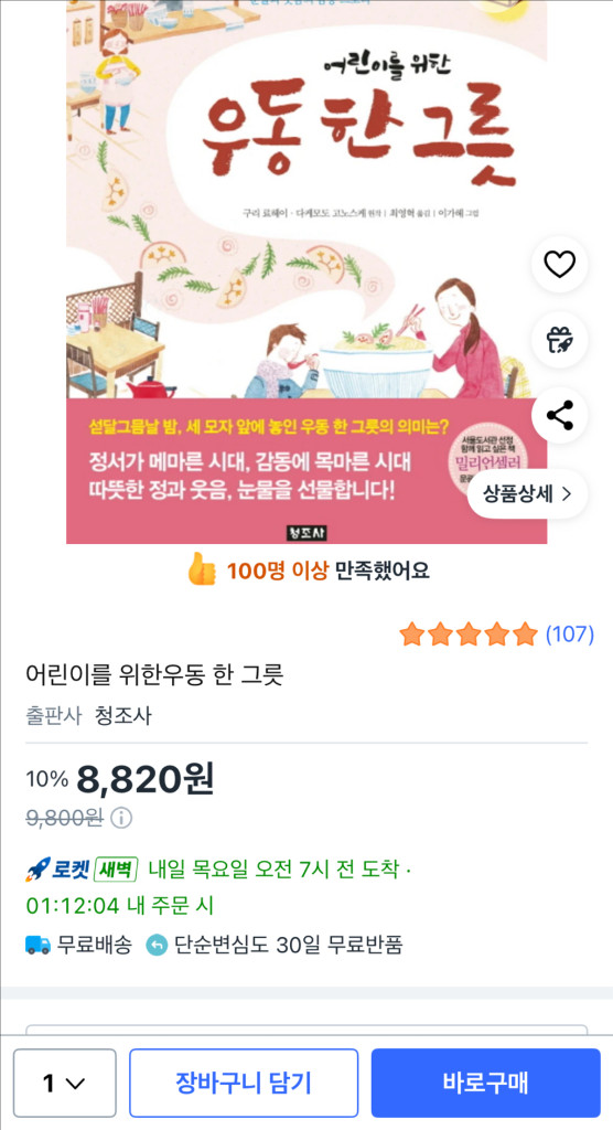유아도서 , 어린이도서 [우동 한그릇] (도서) 유명도서 / 인기도서 / 잠자리 도서