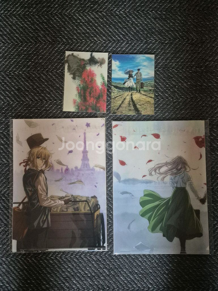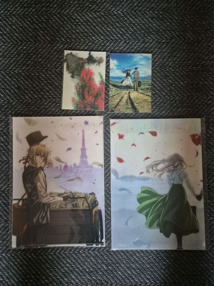 바이올렛 에버가든 극장판 주차별 굿즈 판매합니다. -극장판 포스터 -엽서카드 2장(미개봉) -L자파일 2개(개봉) -종이 스탠드 L자파일 하나가 개봉 당시 포장 비닐이 찢어졌습니다. 참고 바랍니다. 개별판매는 하지 않습니다. 가격은 택배비 포함입니다.