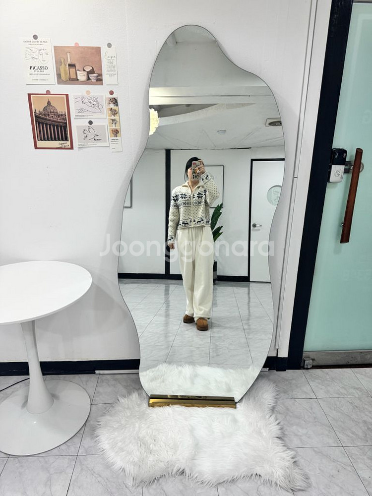 비정형 대형 거울이에요. 골드 포인트가 고급스럽고, 상태도 깨끗합니다 인테리어 포인트로 정말 예뻐요 : )