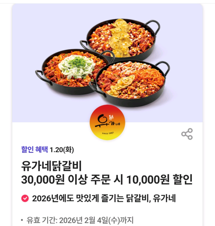유가네닭갈비 1만원 할인쿠폰