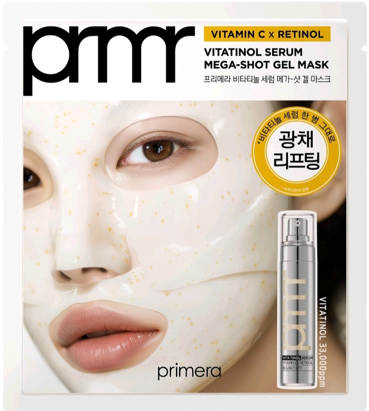 프리메라 비타티놀 세럼 메가샷 겔 마스크 4장입니다 비타민 C와 레티놀이 함유되어 광채 리프팅 효과를 선사합니다 세럼 34g 한 병이 마스크 한 장에 그대로 담겨있어 레티놀보다 2.2배 강력한 탄력 리프팅 효과를 경험할 수 있습니다 겔 슬리핑 마스크로도 활용 가능하며, 오래 붙일수록 유효성분이 흡수되어 마스크가 투명해집니다 최소 30분에서 최대 8시간까지 부착 후 떼어내시면 됩니다 cu반값택비 포함된 가격입니다^^