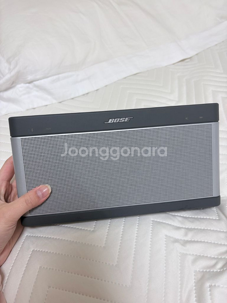 보스 사운드링크 블루투스 스피커 III 케이스 씌워놨어서 깨끗하고 상태 굿 충전기 포함 미국에서 산거라 돼지코 껴놨어요 작은 크기에도 불구하고 강력하고 풍부한 사운드를 제공하여 어디서든 음악을 즐기기 좋습니다