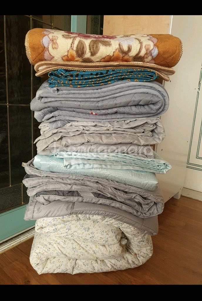 이불종류5가지 편하게 부담없이 임시 자취하면서 막쓰실분께 저렴하게 2만4천원에 드려요 *화색톤 극세사:(203×148cm) 포근하고 도톰하게 까는것 미끄럼방지됨 *하늘색 넓은 이불:(215×177cm) 항상 판판하게 정돈됨 *회색톤단색 면이불:(186×142cm) *회색톤 싱글 도톰 밴드있는 침대패드:(202×110cm) *파랑톤 얇은여름이불:(173×152cm) 여름에좋음 여기까지 5개 저렴하게 2만4천원에 드릴께요 그외 2가지덤임 *두툼한 지퍼커버 솜이불:(190×157cm)커버에 커피같은 얼룩이 있어서 덤으로 드림 솜이 두툼해서 포근함 *쇼파패드:(166×54cm)극세사 두툼하고 포근하고 예쁨 덤으로 드려요