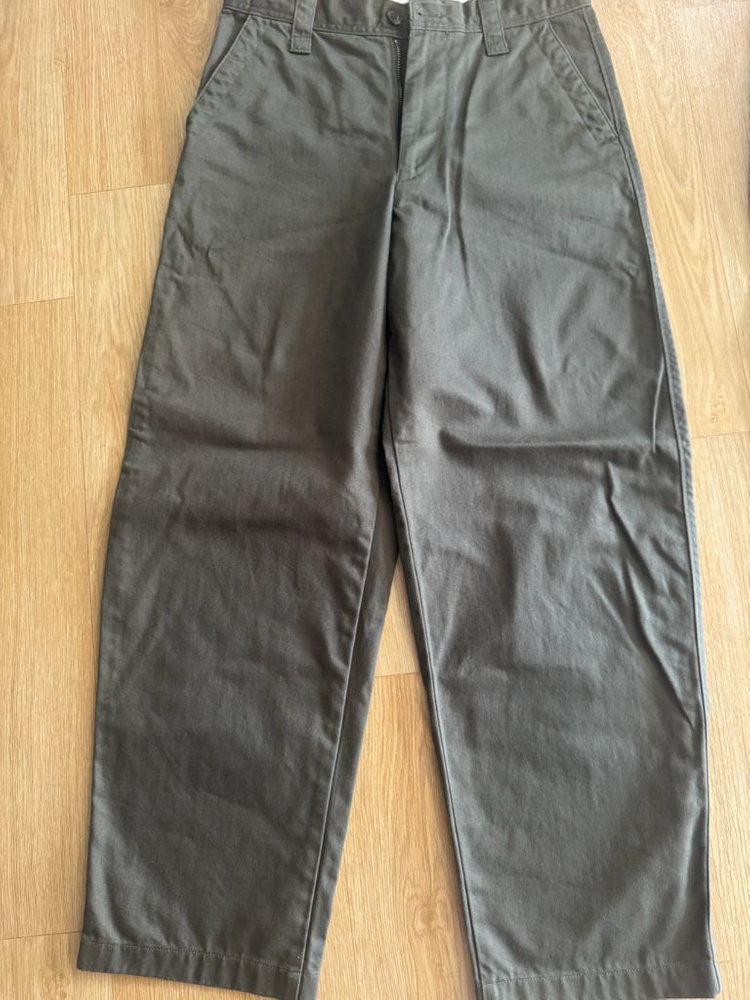 유니클로 와이드핏 치노팬츠입니다. 카키색, 사이즈는 73호입니다. 몇 번 입지 않아 거의 새거 상태라고 보셔도 무방합니다. 추가 문의사항 있으시면 채팅 주세요!
