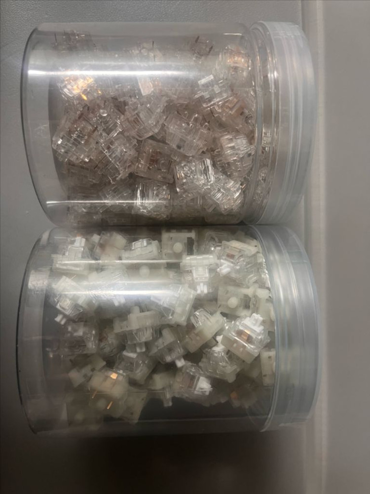 - 완전 투명한 축은 MMD페어리 택타일 스위치입니다. 키압은 53gf입니다. - 스템이 흰 축은 KTT 강백축 v3 리니어 스위치입니다. 키압은 40gf 입니다. 각각 110알씩 풀배열 대응하고요. 각 가격은 1.8만입니다. 직거래는 가정역4번출구앞 혹은 gs25 구로벚꽃점에서 가능합니다.