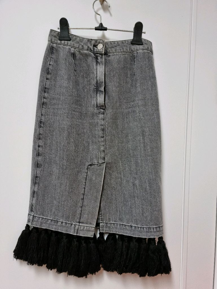 이태리제품으로 유니크한 디자인이 많은 브랜드입니다 타슬이 달려있는 엣지 있는 워싱그레이 진 스커트입니다 기장 70cm입니다 싸이즈38 44 마른55가능합니다 반품 환불 안되니 신중한 구매부탁드려요 직거래 택배착불 GS반값택배 가능합니다