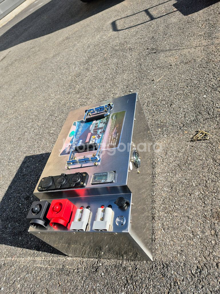 캠핑이나 차박에 최적화된 대용량 리튬배터리예요. 다양한 포트와 컨트롤러가 포함되어 있어 캠핑 장비 연결이 편리합니다. 사용감은 있지만 정상 작동하는 상태입니다.