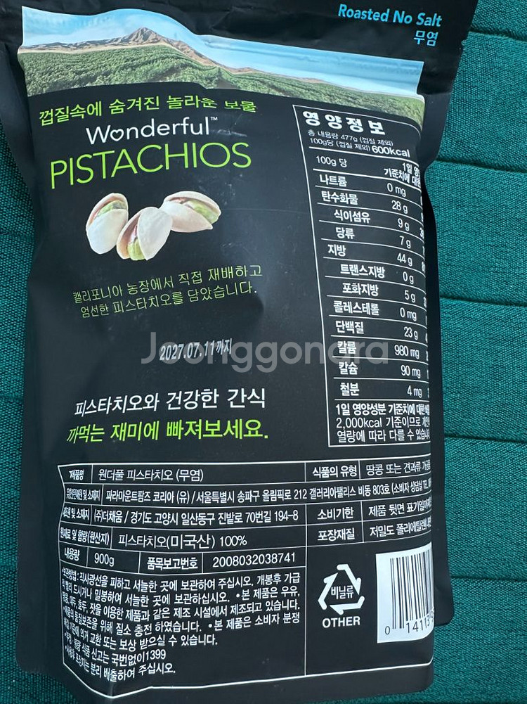 원더풀 무염 피스타치오 900g 유통기한 27년7월11일까지 1개 있습니다 택배는 제가 부담하고 보내드려요